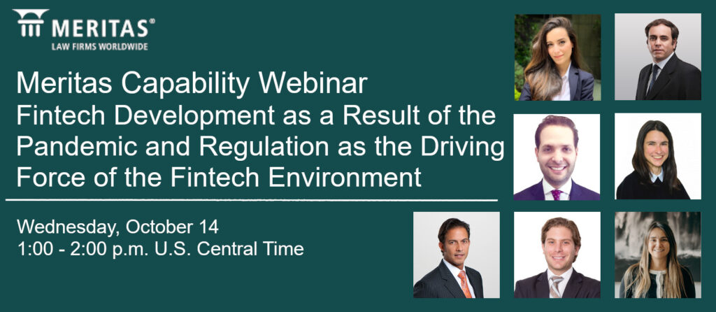 Ya está disponible la grabación del seminario web de capacitación de Meritas: «El desarrollo de Fintech como resultado de la pandemia y la regulación como fuerza motriz del entorno Fintech» en el cual el Dr. José Maldonado Stark, socio de la firma, llevó a cabo la moderación del evento. Si no pudo asistir o si desea volver a ver el seminario, utilice el siguiente enlace para ver la presentación: https://bit.ly/